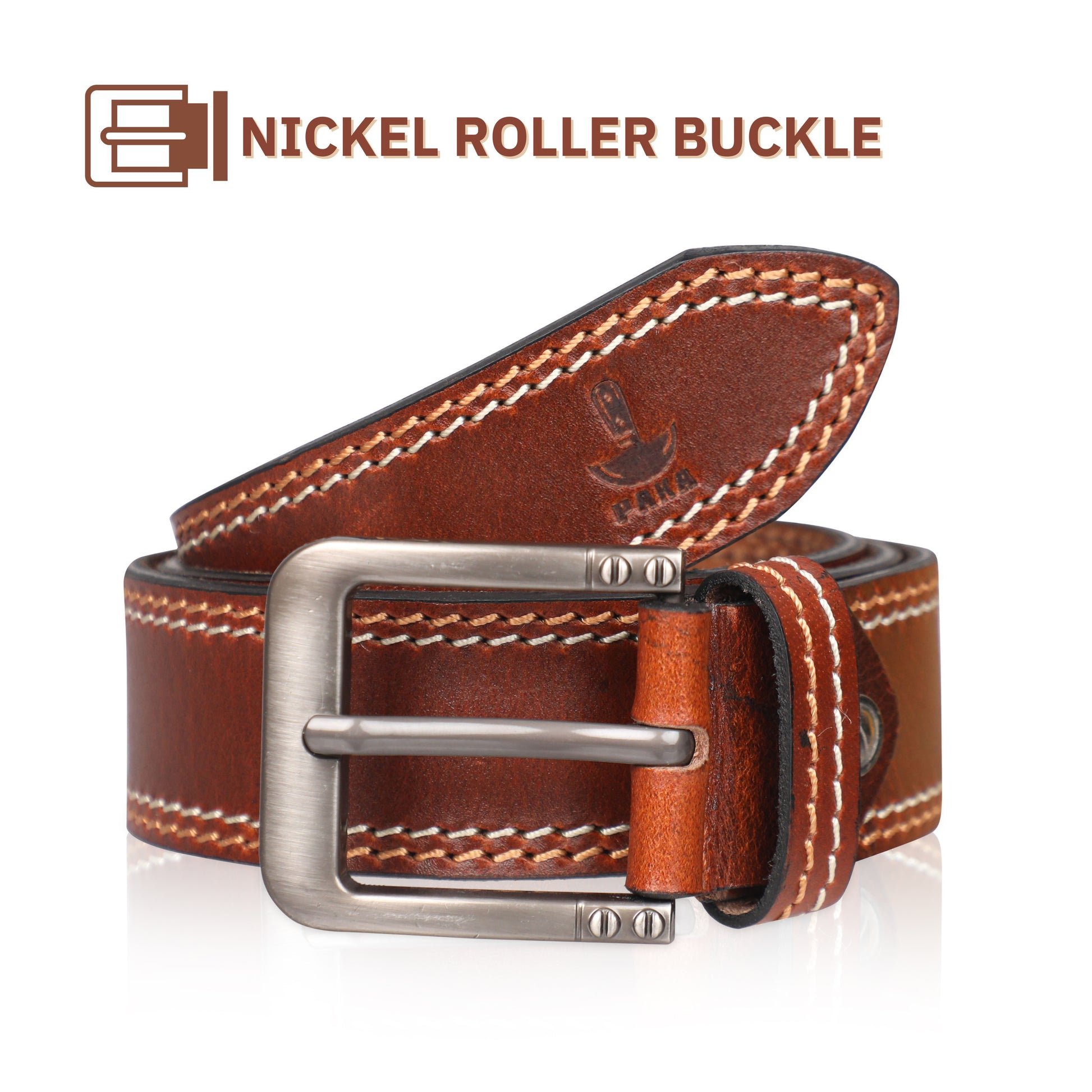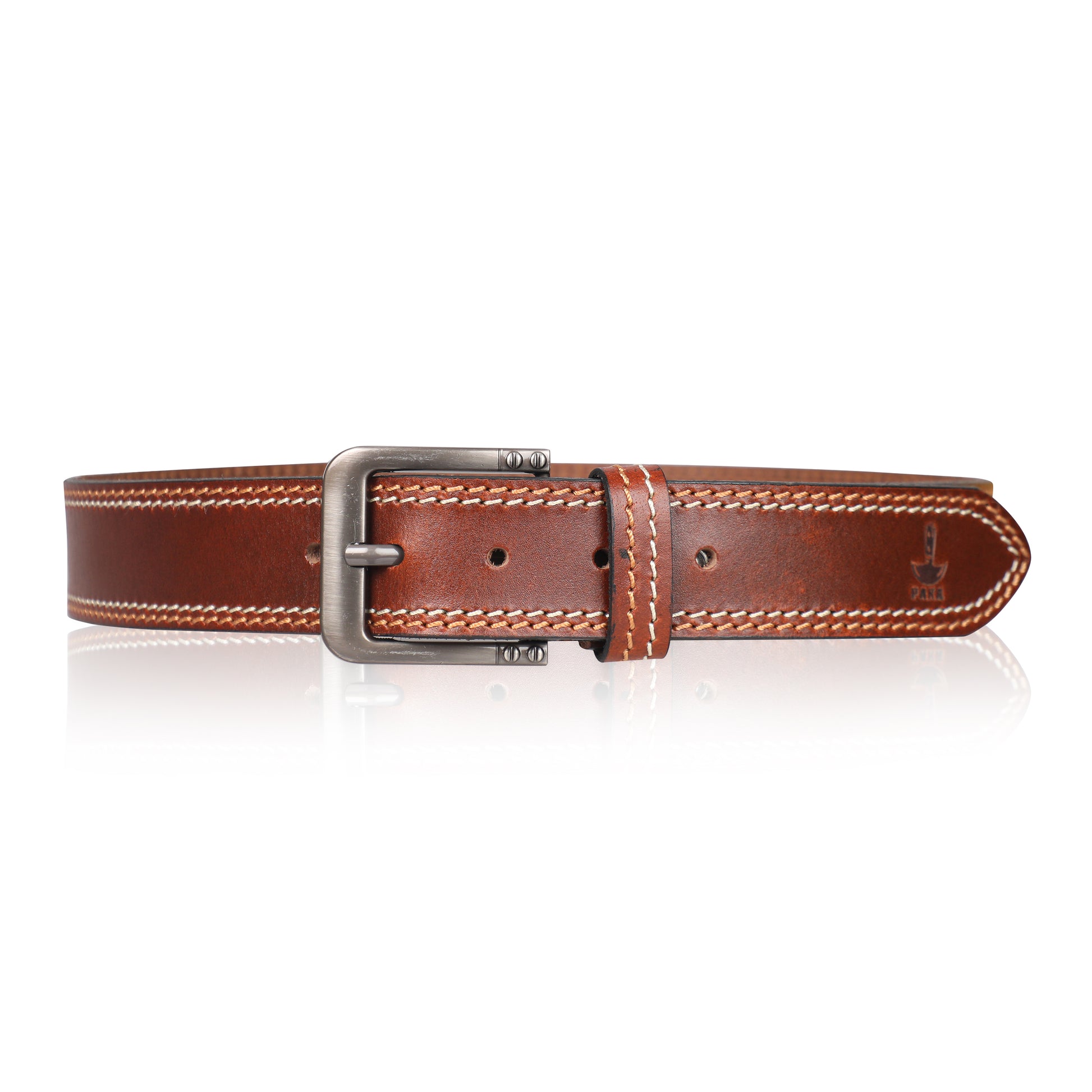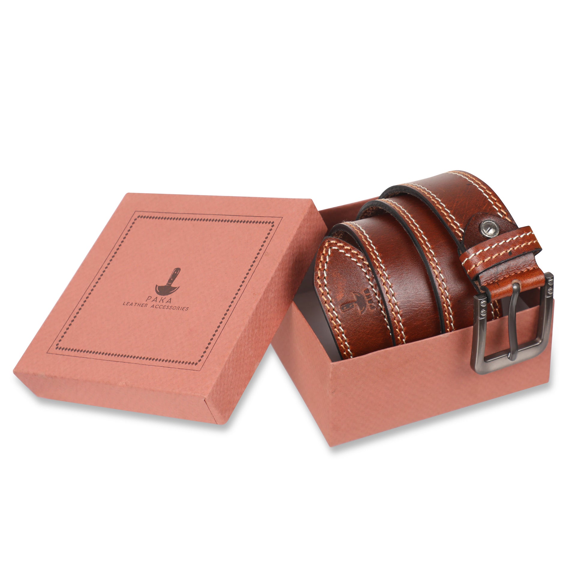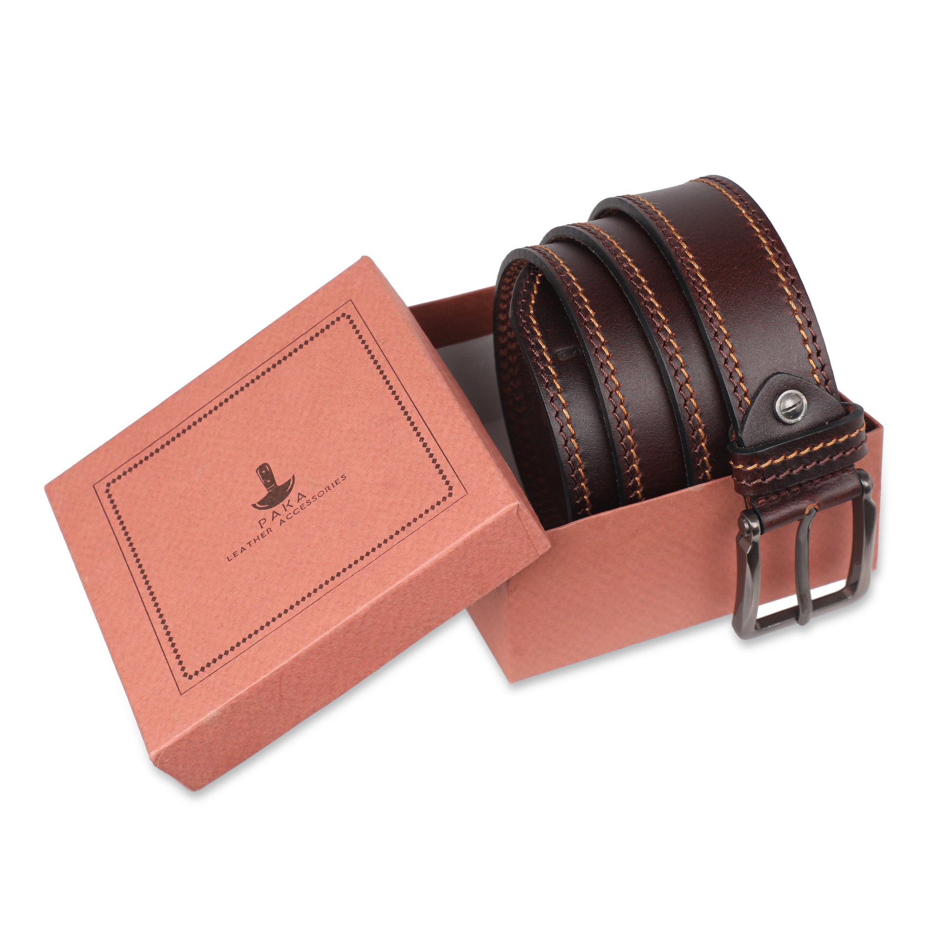 PAKA® Men’s Genuine Leather Belt with Pin Buckle – Double Stitched (Formal & Casual)