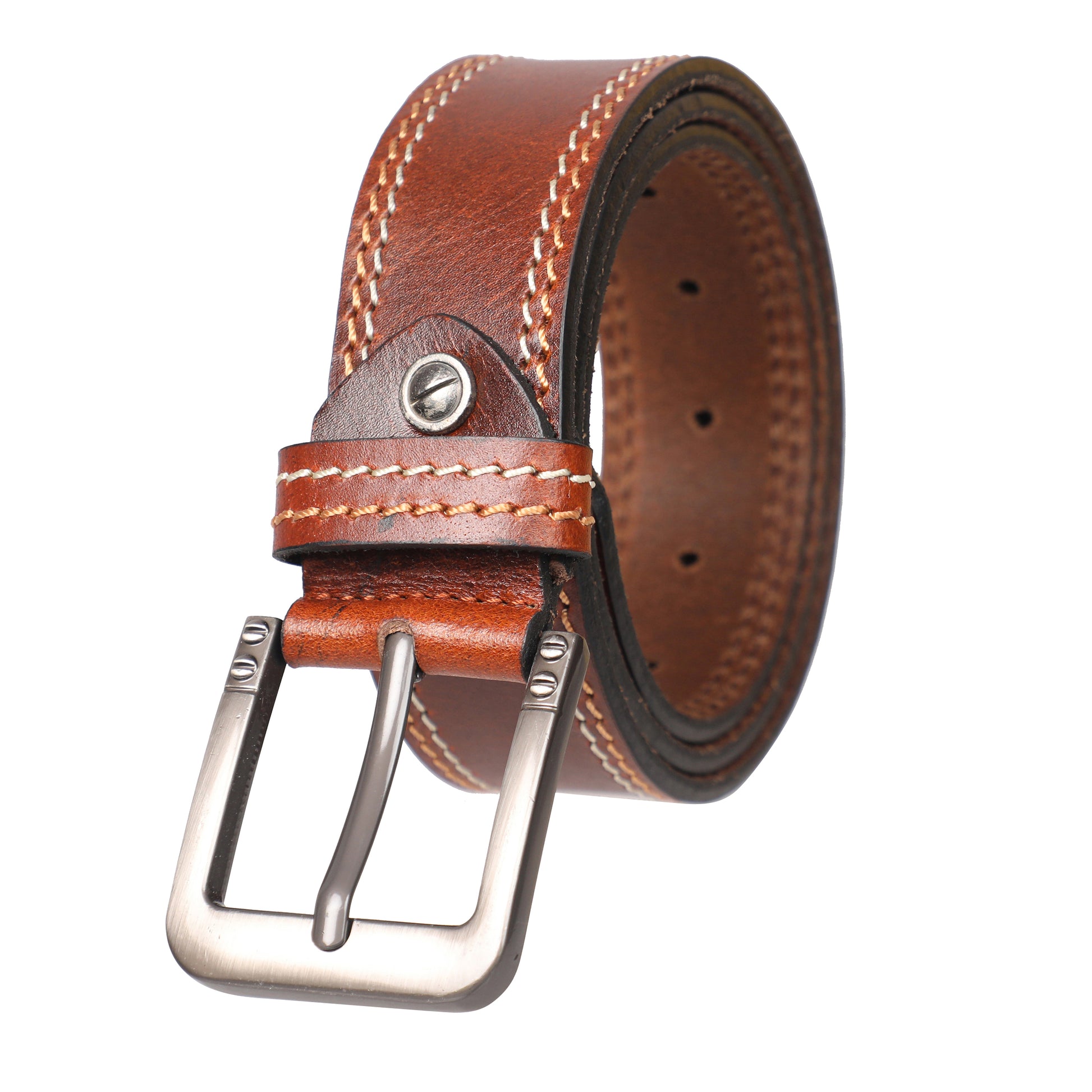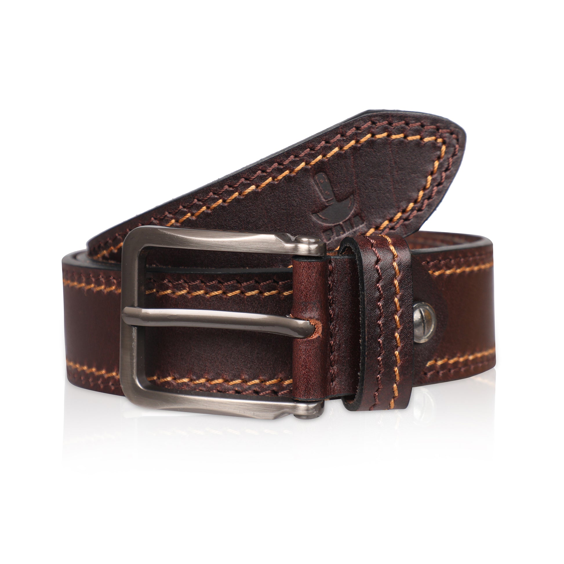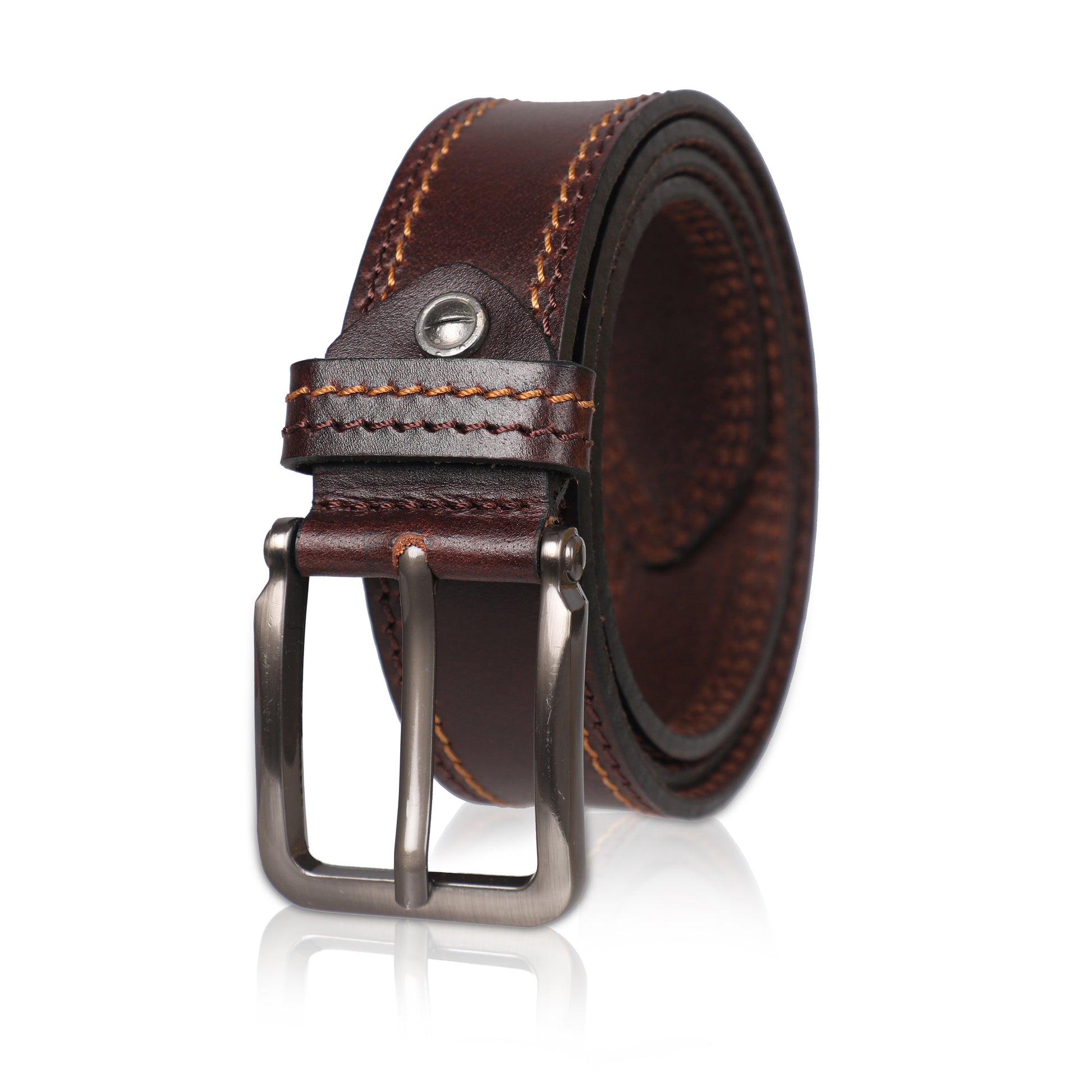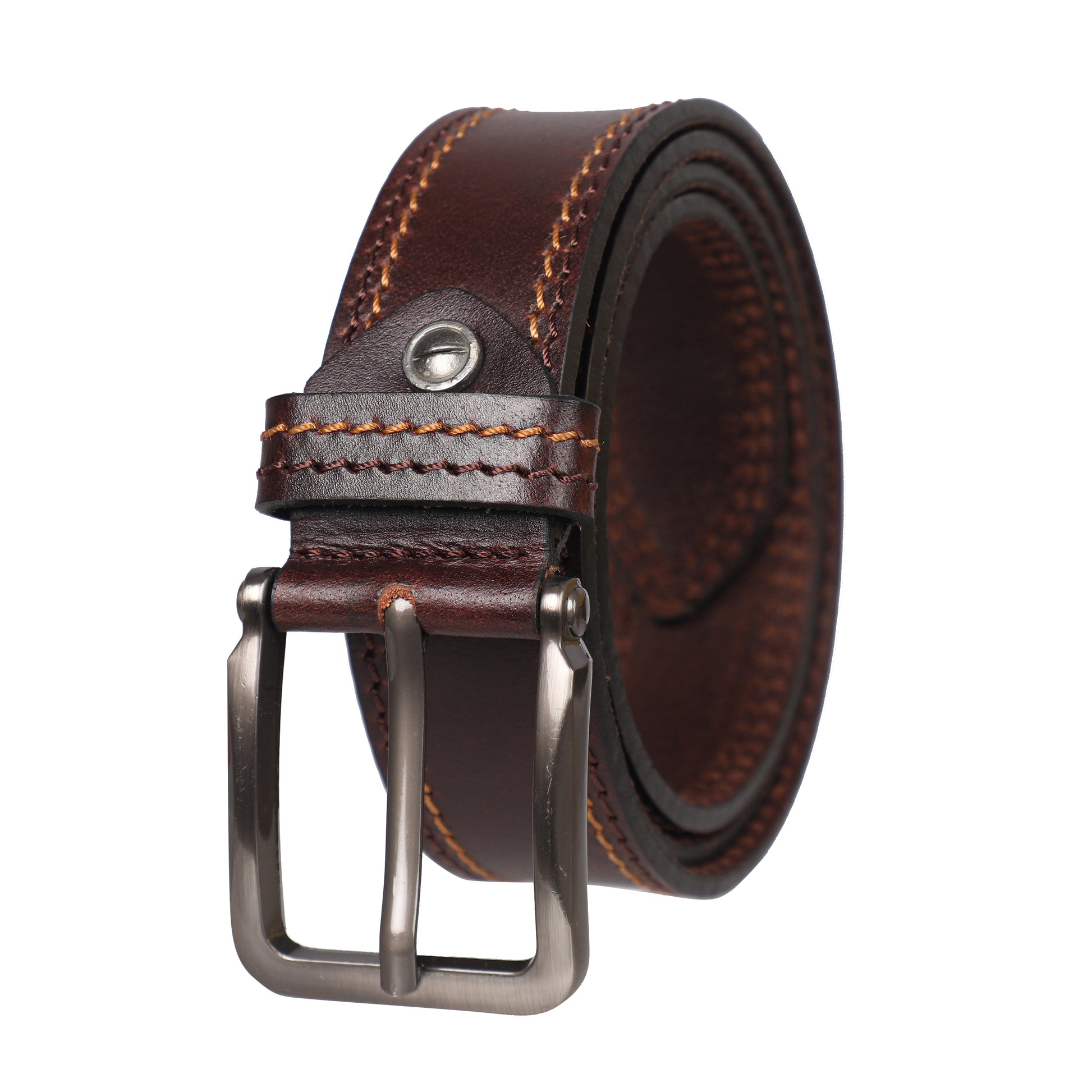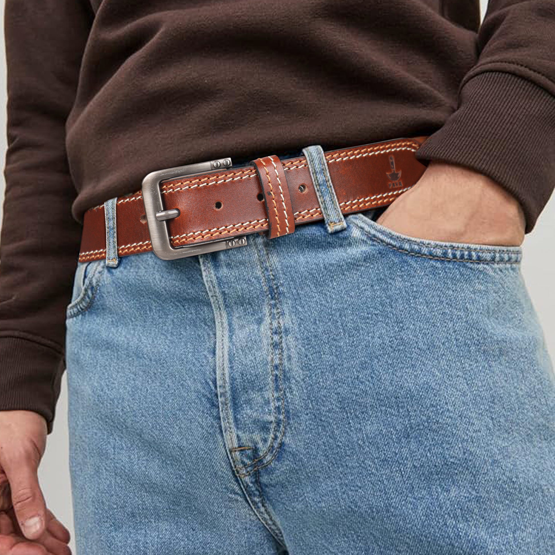 PAKA® Men’s Genuine Leather Belt with Pin Buckle – Double Stitched (Formal & Casual)
